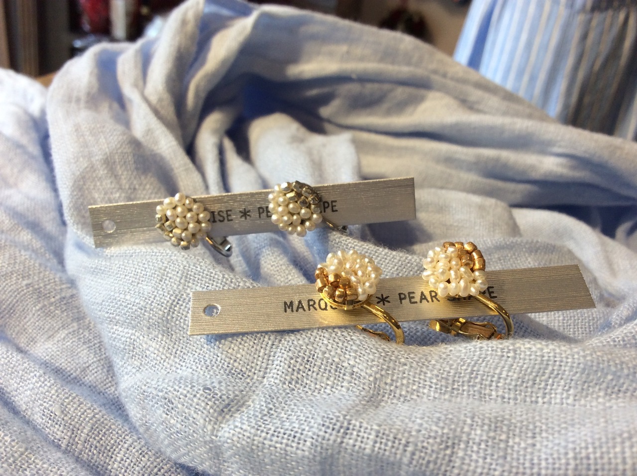 種のように小さいシードパールとメタルビーズをラウンドにデザインしたシンプルなピアス。メタルビーズは、ゴールド色とシルバー色があります。イヤリングも各色ご用意しております!MARQUISE & PEAR SHAPEという日本のブランドのものです。