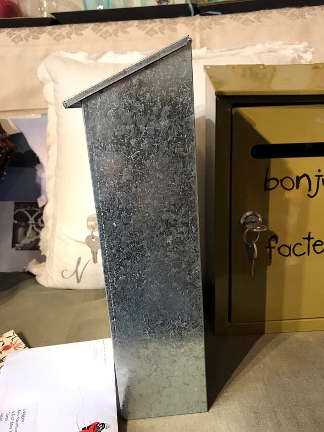 フランス語で「LETTRES」(レター)、SNS全盛の今も、真心が伝わる手書きの手紙に勝るものなし。蓋を開けると上からも長めの封筒が入れられます。取り付けるための金具と鍵も付いています。「もう備え付けの郵便箱があるから、、」という方は、お部屋のドアに設置して、面と向かってはなかなか言えない感謝の一言を家族に伝えるための郵便箱にしてみてはいかがでしょうか。H30 x W20 x D7.5cm フランス製