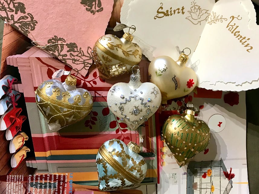 薄い吹き硝子にペイントしたマカロンのようなオーナメント、ヴァレンタインの贈り物にも!H7.5 x W6 x D3.5cm 透明な円柱型ケースに入れてラッピングします。