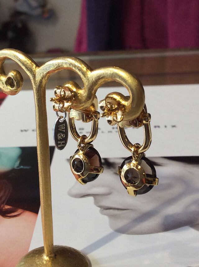 ベルギーのアントワープのWOUTERS & HENDRIX(ウッターズ&ヘンドリックス)、1980年代に彗星のごとく現れたアントワープ シックス(ドリス・ヴァン・ノッテンを始めアントワープ王立アカデミーを優秀な成績で卒業したデザイナー6人)と共にアカデミーの彫金科を卒業したカトリン・ウッターズとカレン・ヘンドリックス、今や世界で活躍する歌手や女優さん達にも愛されています。今季のテーマは「A WILD ORIGINAL」ニューヨークのナイトライフがテーマです。スモーキークオーツとゴールドフィルド加工のシルバー925がバッグを持つようなモチーフになっていてユニークなデザインです!