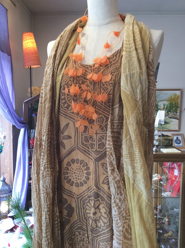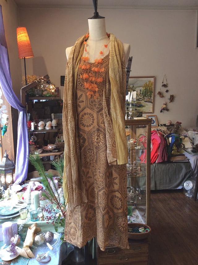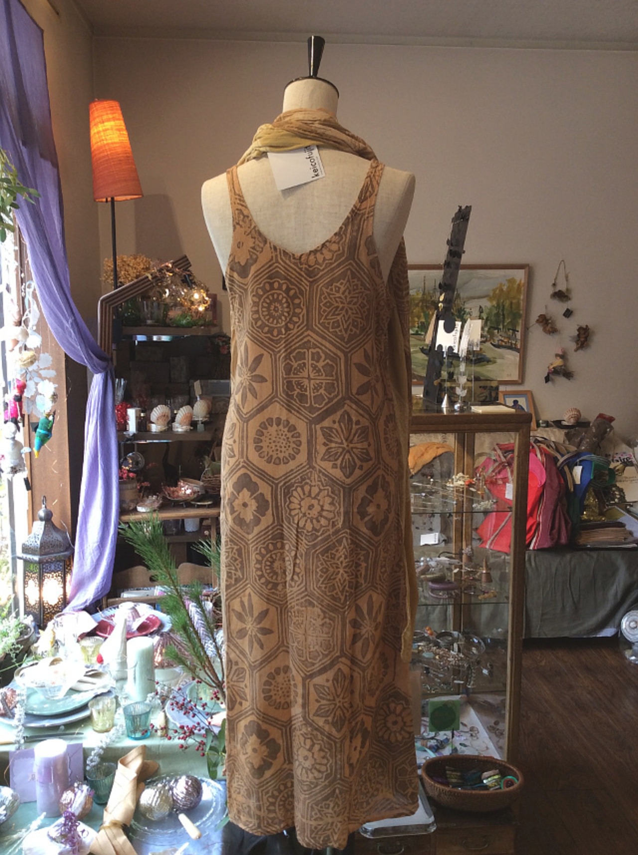 ニューカレドニアのフランス人デザイナーWARNA コットン生地にフープという木彫りに使われる大木の粉で手染めしたワンピースです。伝統的な模様がエキゾチック!サイズ S