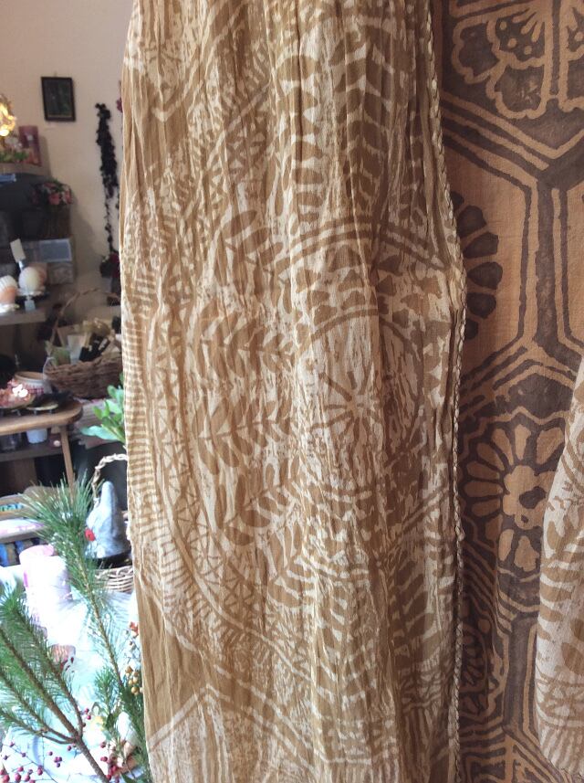 ニューカレドニアのフランス人デザイナーWARNA コットン生地にフープという木彫りに使われる大木の粉で手染めしたストールです。伝統的な模様がエキゾチック!サイズ 33x180cm
