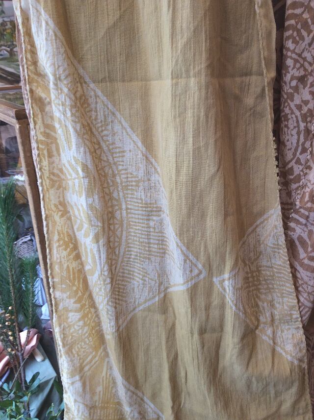 ニューカレドニアのフランス人デザイナーWARNA コットン生地に柘榴で手染めしたストールです。伝統的な模様がエキゾチック!サイズ 32x180cm