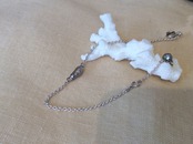 シルバーチェーンのセンターと留め金部分にもタヒチ産ケシパールがあしらわれています。シンプルながら、フェミニンなデザインで仕事中もつけられそうです。ケシパールとは、養殖真珠とは違い人間の手によって入れられる「核」がありません。真珠の母貝に偶然入った砂などから形成される100%天然のもの、採れる真珠全体の0.5~2%ほどしか存在しません、ヨーロッパでは「神様の涙」と言われる由縁です。核が無いので真珠層が厚く、光沢が素晴らしく、汗や酸に強いのが特徴です。