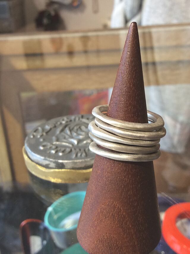 歪に丸くない、手仕事感のあるシンプルなリングです。重ね付けすると一層、素敵です!艶有りと艶消しの2タイプ SILVER 925(温泉などは、成分により色が変色する場合がありますので、ご注意ください。)